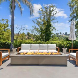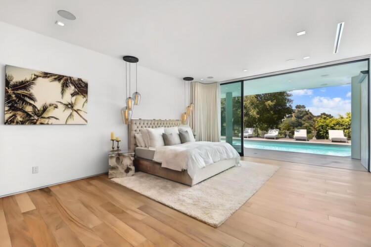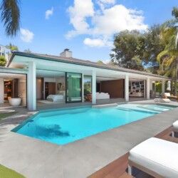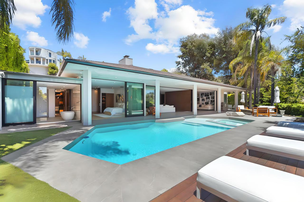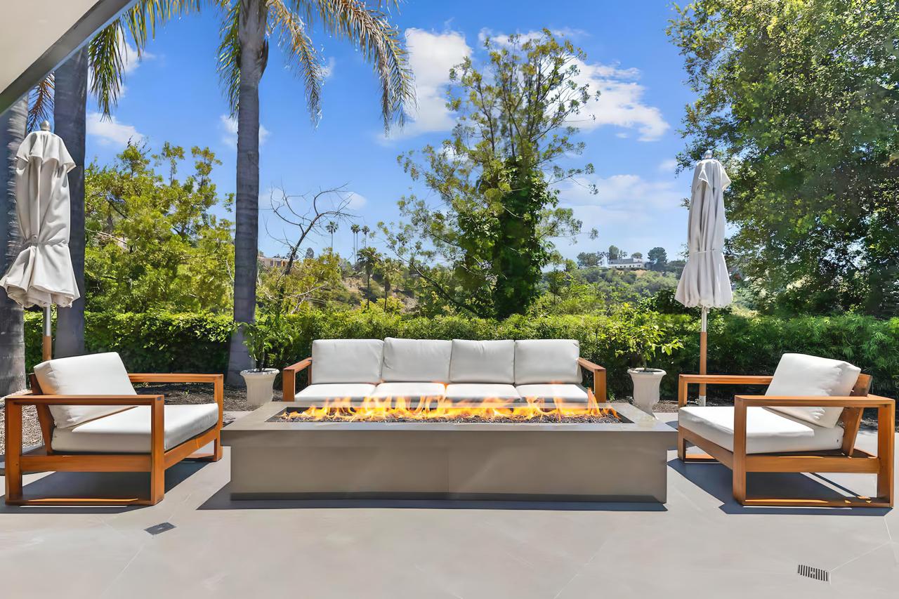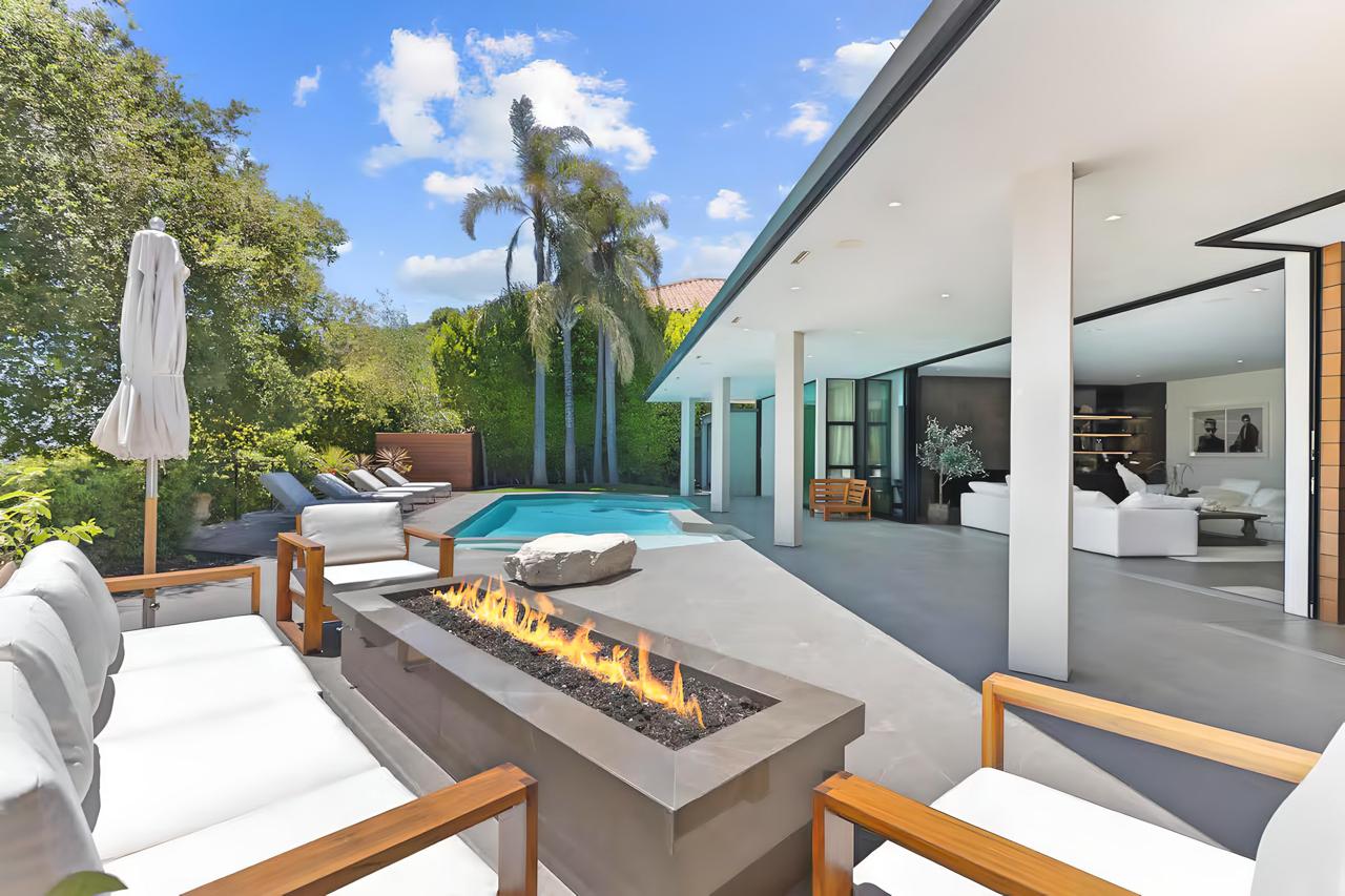 Mid-century warmth meets Beverly Hills glamour. Slide open the glass walls and let the outdoors in—whether you’re gathering around the firepit or watching the sunset from the loungers, this place was made for moments. The home features:
