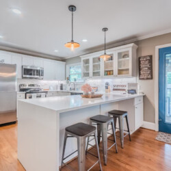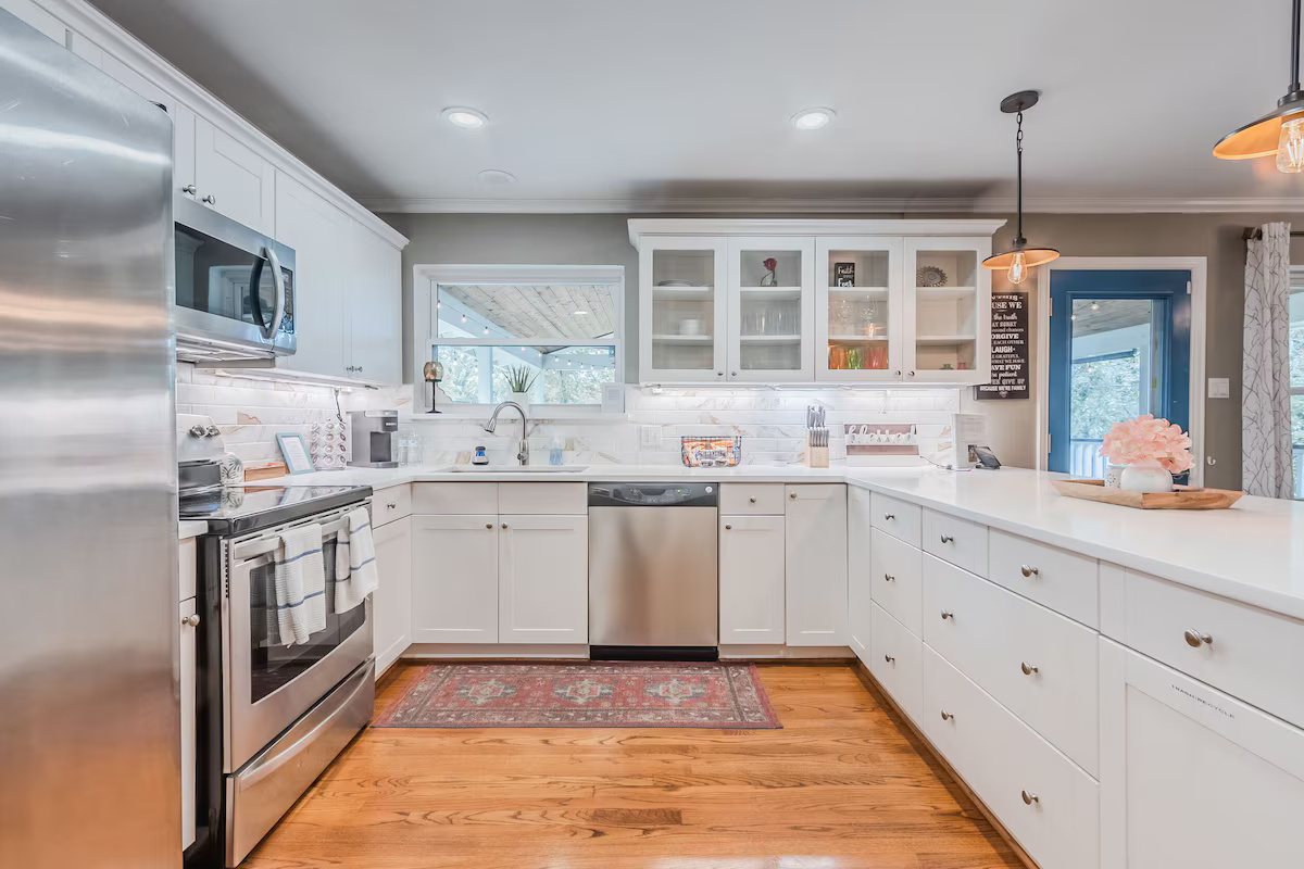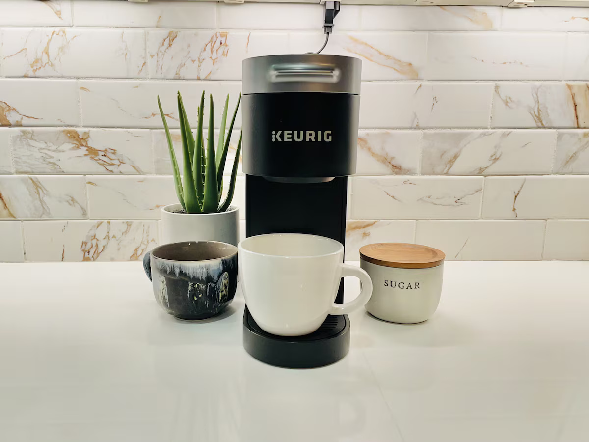 Kitchen & Dining: Fully stocked with everything you need to cook and enjoy meals — pots, pans, utensils, dishes, Keurig, blender, toaster, and wine glasses.
