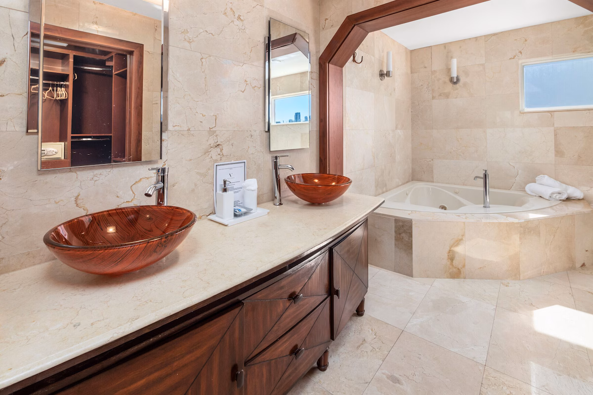 Imagine waking up to panoramic views of Biscayne Bay, sipping coffee on a sunlit balcony, and spending your day lounging by a private, heated pool. This tri-level villa is designed for comfort and entertainment, perfect for families, groups of friends, or special celebrations.