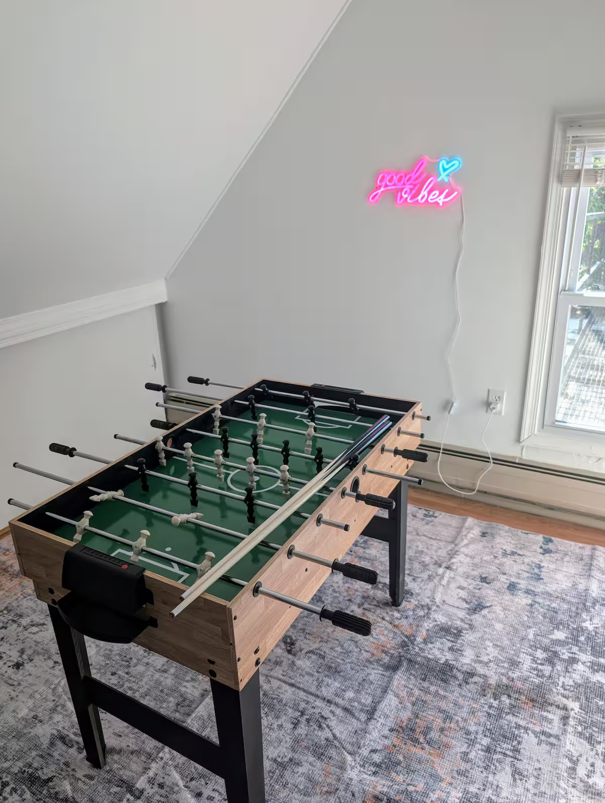 🎮 Dedicated game room with Xbox, foosball, mini pool & board games