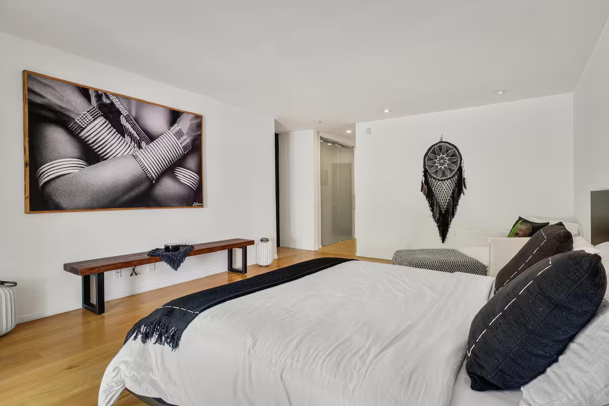 This hillside escape blends soulful charm with Beverly Hills elegance. Featuring 2 king bedrooms, panoramic canyon views, and a serene outdoor pool area with a bamboo cabana, this single-level villa invites guests to slow down and soak in LA’s magic. Enjoy an espresso at sunrise, cozy nights by the firepit, and quick access to Rodeo Drive, Hollywood, and the beach — all from a peaceful, design-forward retreat.